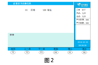 ② 按數字“5”鍵,進入設置漢字注釋信息界面, 輸入2位回路、3位地址,按“編輯”鍵,操作數字鍵進行編輯(圖2),按“符號”鍵進行英文-機內碼-數字-拼音輸入切換,通過上下左右鍵進行選擇。