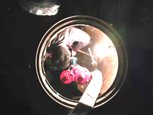 1、用扳手打開地下消防栓的水袋口連接開關。